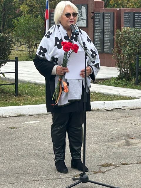 В память о тех, кто, защищая родную землю, положил свои жизни на алтарь Победы, прошла церемония возложения цветов. Была объявлена минута молчания.